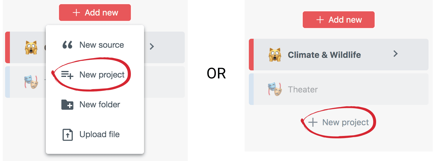 A project can be a thesis, a research paper, or a broader topic you are doing research on, which you can then split into subtopics by using folders.