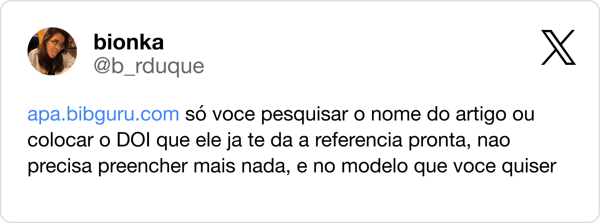 O BibGuru permite-te pesquisar livros, websites e artigos de revistas e adicioná-los diretamente a uma bibliografia. Podes, então, gerar citações em MLA, APA e milhares de outros estilos de citação. O estilo de citação preferido pelos nossos utilizadores é o APA (7ª edição), seguido pelo Vancouver.